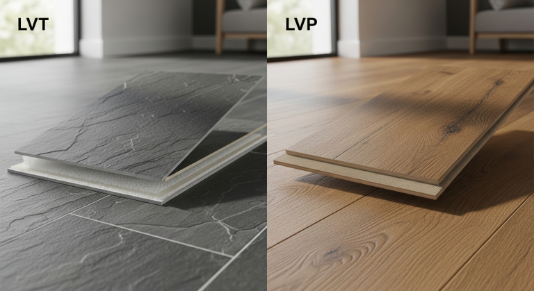 LVT and LVP are modern synthetic materials that expertly mimic the look of natural wood or stone using highly realistic photographic layers.